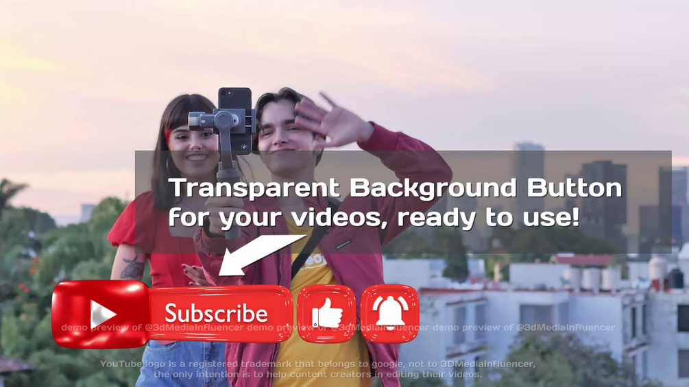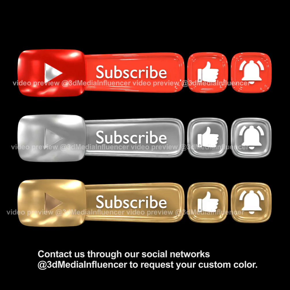 Enhance your call to the subscriptions of your channel with the buttons (subscribe, like and notifications) in 3D animated in RED color.